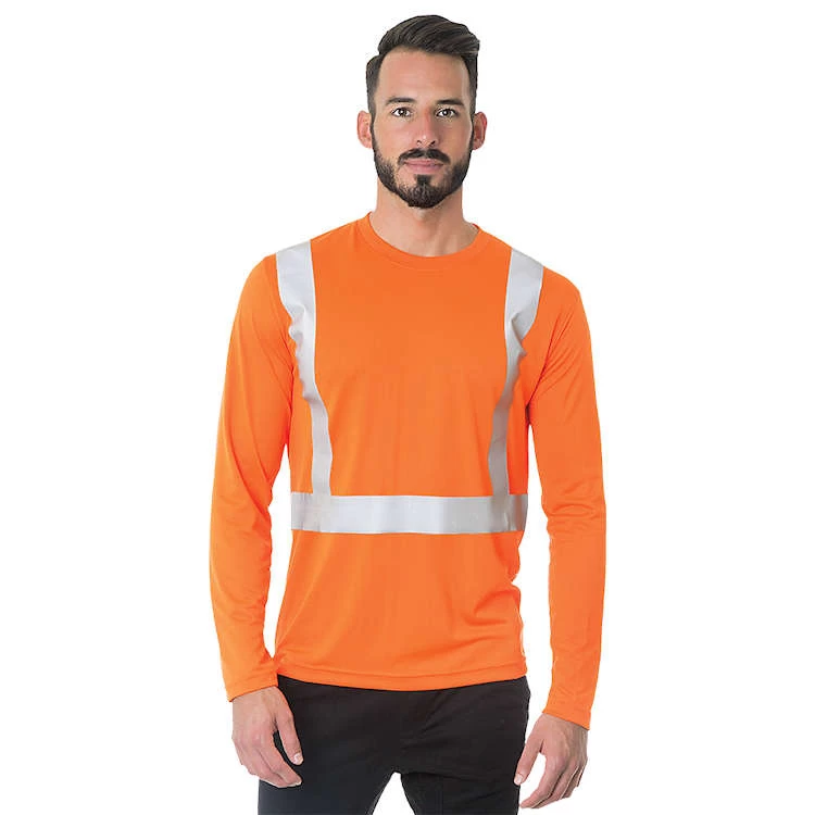 Bayside Hi-Vis Long Sleeve Performance Crew Tee Solid Striping