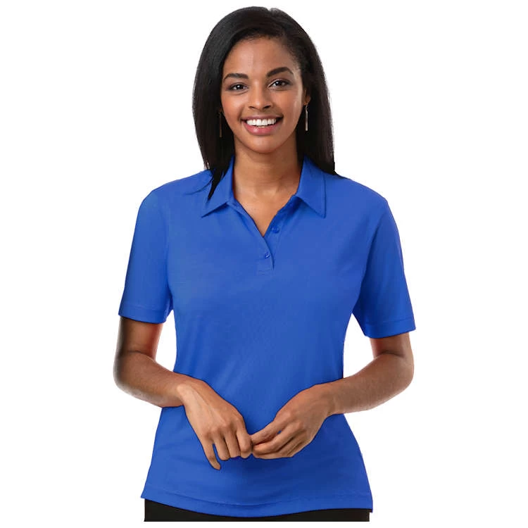 A special jacquard weave creates a nailhead effect on this moisture wicking polo. Perfect for the boardroom, golf course and everywhere in between, our moisture wicking Nailhead Polo insures comfort and professional styling. 5.oz 100% polyester interlock knit. Matching buttons. Self-fabric collar for modern styling. Tag free label. Hemmed sleeves. Ladies’ classic fit.