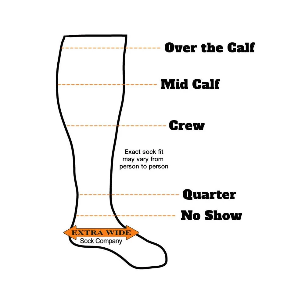 Loose Fit Stays Up mid-calf dress socks are 25% wider than the typical dress sock, with a stretch of about 21 inches in the leg. Designed for people with a regular width or a wider width up to EEE. The socks are less binding on the feet and legs, and fuller cut than other dress socks. If you have a muscular or wider calf, or just like a looser more comfortable fitting mid-calf sock, then give these socks a try. Your feet and legs will thank you. Made from soft ring spun cotton and available in black, navy, tan, and brown. The socks are unisex and fit shoe sizes from women’s size 10 regular width to a EEE wide width up to a men’s size 16 regular width to a EEE wide width. Proudly Made in the USA!